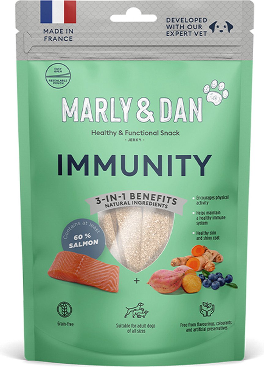 “MARLY&DAN חטיף ג'רקי לכלבים אמיוניטי 80 גרם” נוסף לסל הקניות. מעבר לסל הקניות