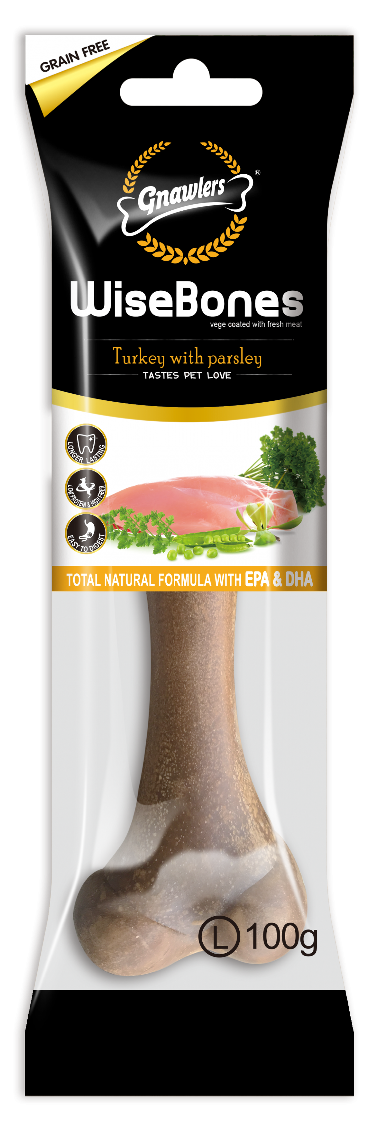 עצם ללא דגנים בטעם הודו ופטרוזיליה (לארג) 100 גרם Gnawlers