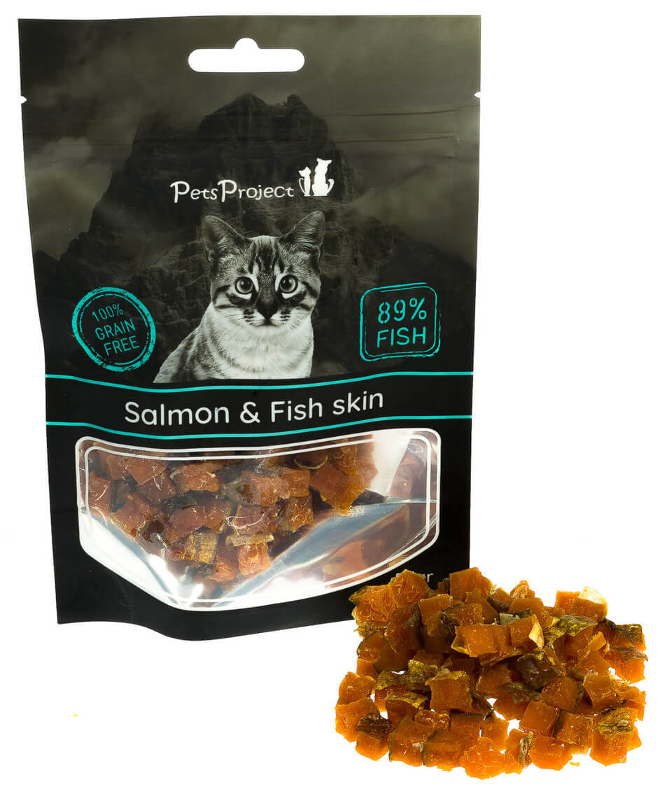 פטס פרוג'קט חטיף לחתול סלמון עם עור 50 גרם PetsProject