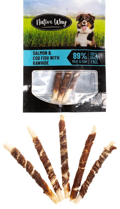 חטיף נייטיב וואי מקל באפלו עטוף בסלמון ודג קוד 80 גרם Native way