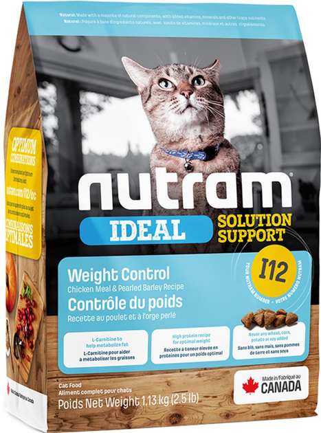 נוטרם I12 חתול וייט קונטרול עוף וגריסי פנינה 2 ק"ג Nutram